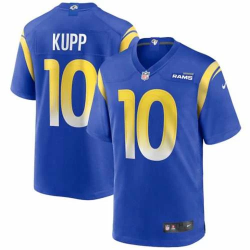 Looking to take your fandom to the next level? The Nike Los Angeles Rams Cooper Kupp Game Jersey has screen-printed letters, numbers, and graphics so you’ll be ready for game day. Cheer the Rams on this season whether you’re at the stadium or watching from home. This Cooper Kupp jersey has a great amount of detail put into it and is built for serious fans!