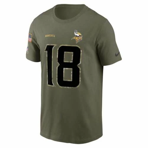 Show everyone who you root for with the Nike Minnesota Vikings Justin Jefferson #18 2022 Salute To Service Name & Number T-Shirt. Featuring Minnesota Vikings graphics and colors, you’ll be ready to cheer your favorite NFL team to victory. Whether you’re heading to the game or just want to show off your favorite team, this Minnesota Vikings top will leave no doubt where your loyalty lies. Wear your team’s colors and show off your pride with the Nike Minnesota Vikings Justin Jefferson #18 2022 Salute To Service Name & Number T-Shirt.