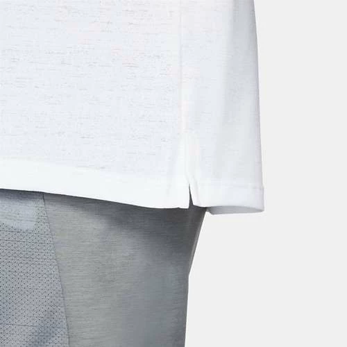 The seams at the shoulders are rolled back to help your arms move freely. A curved hem extends coverage in the back while hem vents keep you mobile.